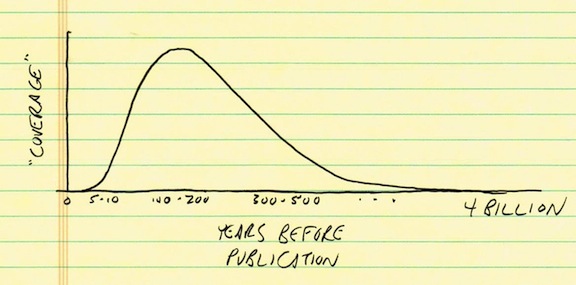 Reading the article brought me back to a recent discussion with some coworkers. They said that high school math stays pretty much the same, although some of the higher-ups keep trying to change how it’s taught. They said that high school science remains relatively stable, but does make adjustments to curriculum when discovery warrants it. But history, they said, keeps growing at a relatively constant pace of roughly one year per year. More if you consider that with an expanding population, there’re more people out there to make history.