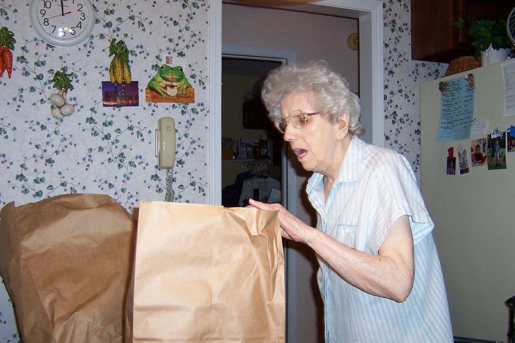 Today would have been my grandmother’s 114th birthday. I haven’t seen this picture before, or at least I don’t remember it. But I know when it was taken, which was her next-to-last birthday. I know where it was taken, which was at her dinner table. And I remember that look. I hope that whoever did the shopping that day brought the right stuff. Elsewise?